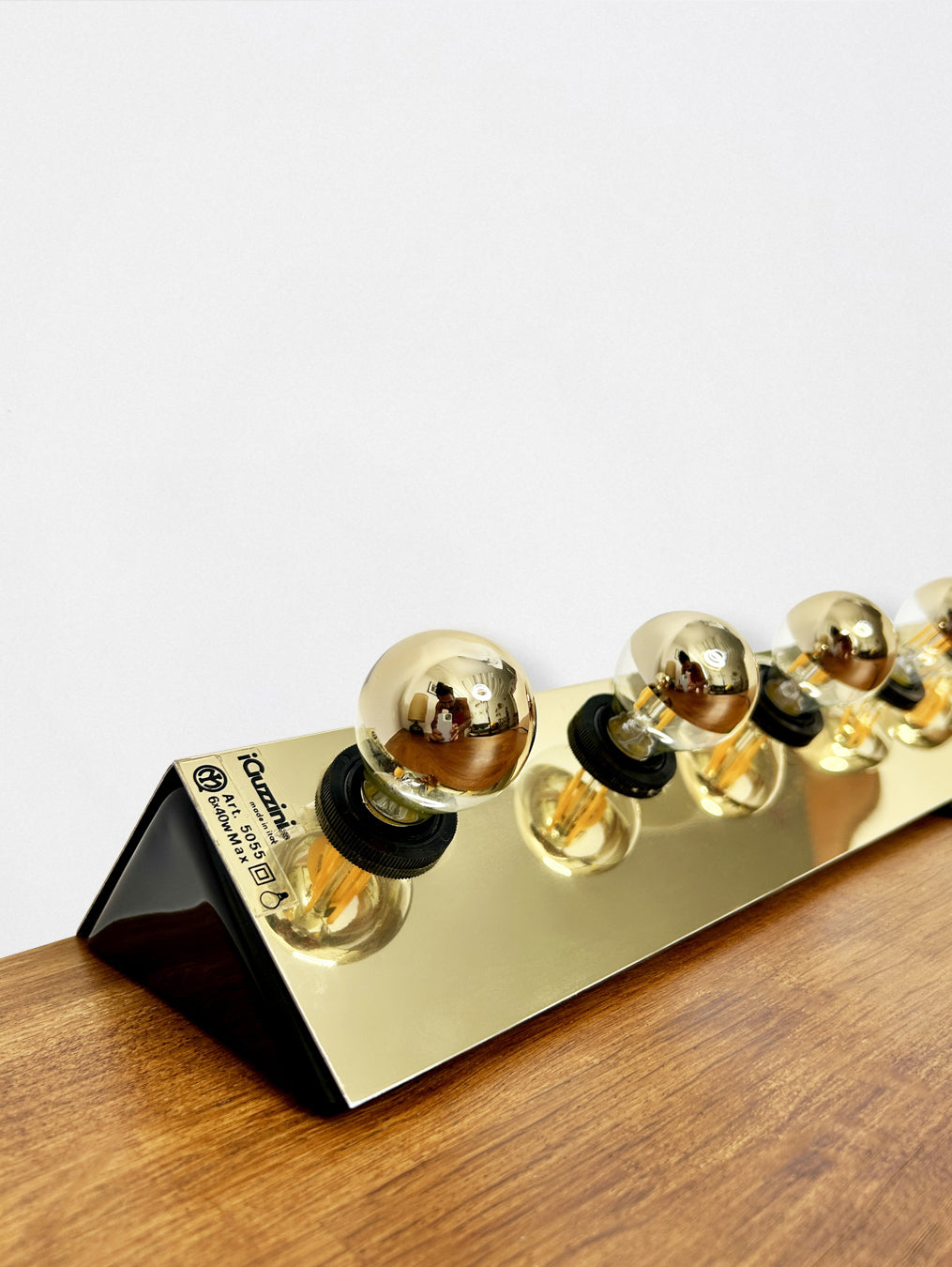 Lampe murale ou à poser des années 70 et par la maison italienne Guzzini, en métal doré. Made in Italy.